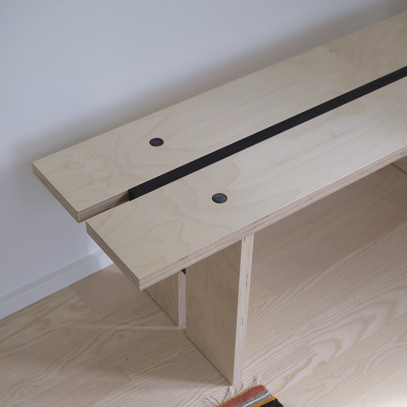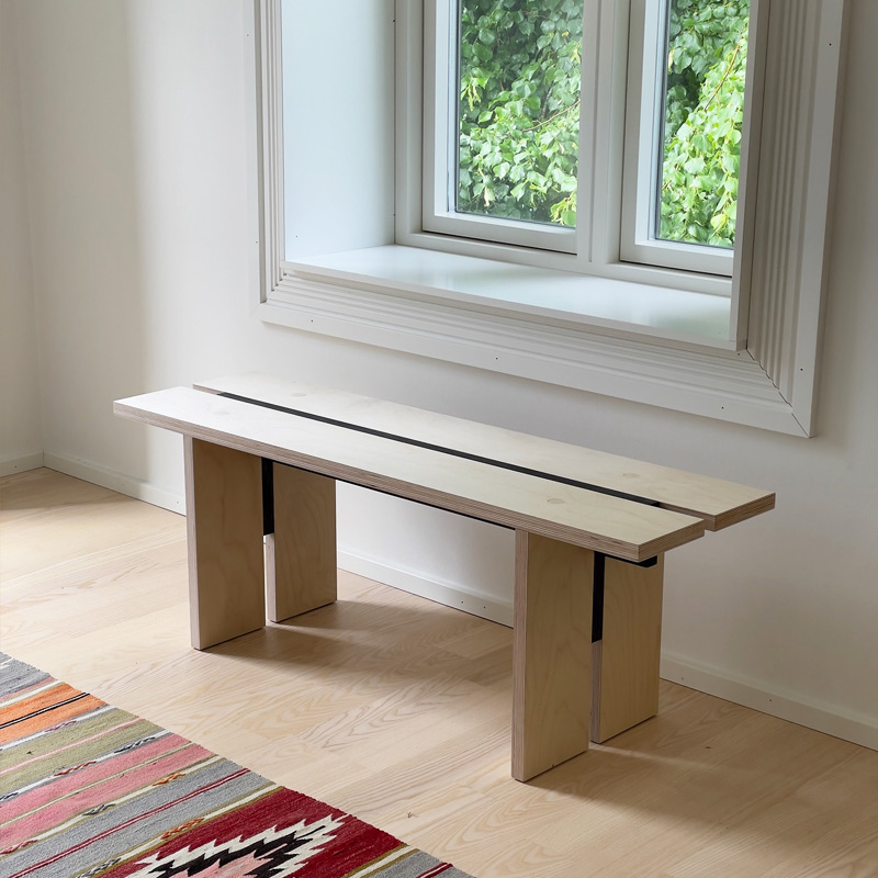 Bænken leveres som flat-pack og består af tre dele, som nemt samles med vedlagte skruer og umbraconøgle.