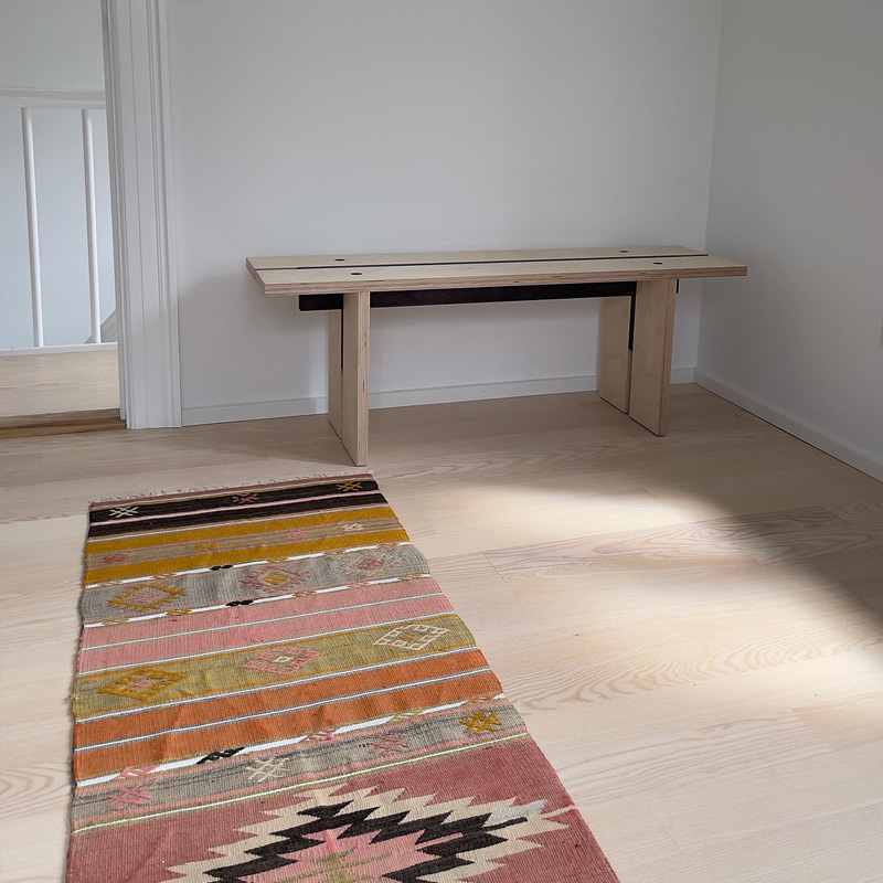 Bænken er designet til de tre ferielejligheder på Saftstationen.
