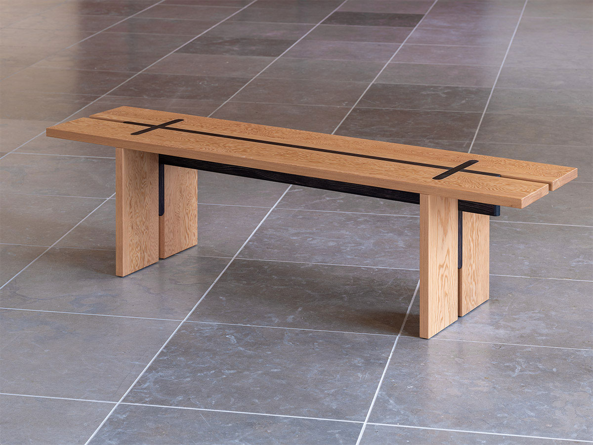 Bænken fås med sortbejdsede eller naturfarvede knopper.
