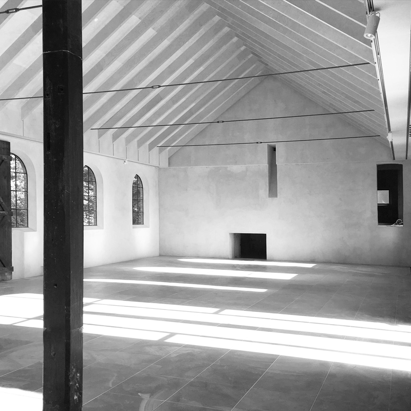 Kig fra tårnværelset hen mod taget over salen