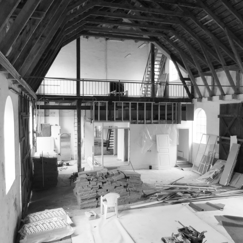 Spærkonstruktionen er stadig synlig her