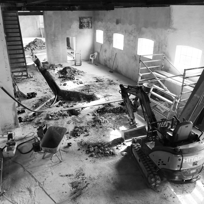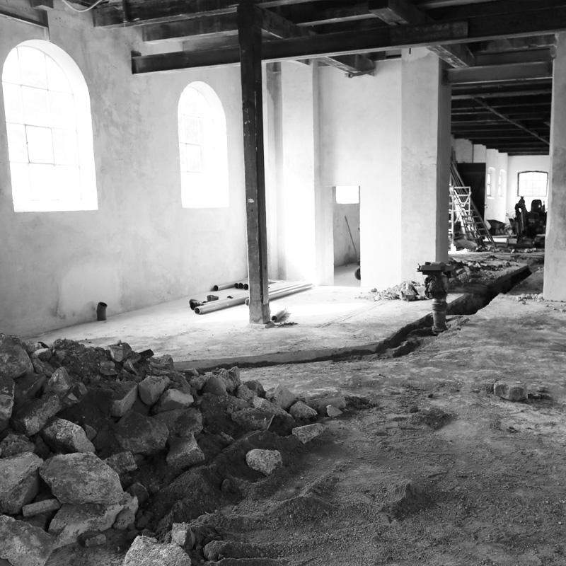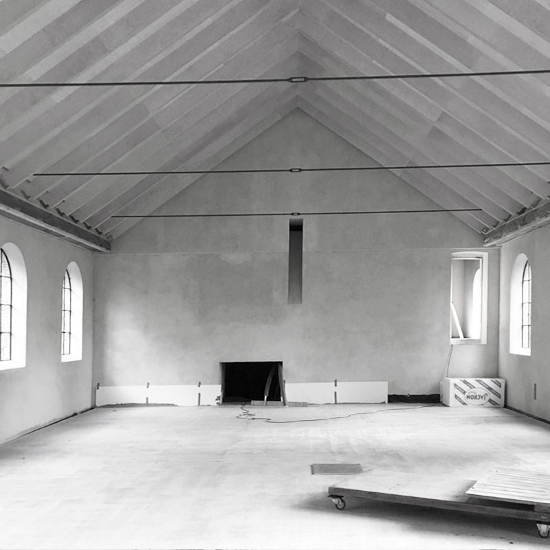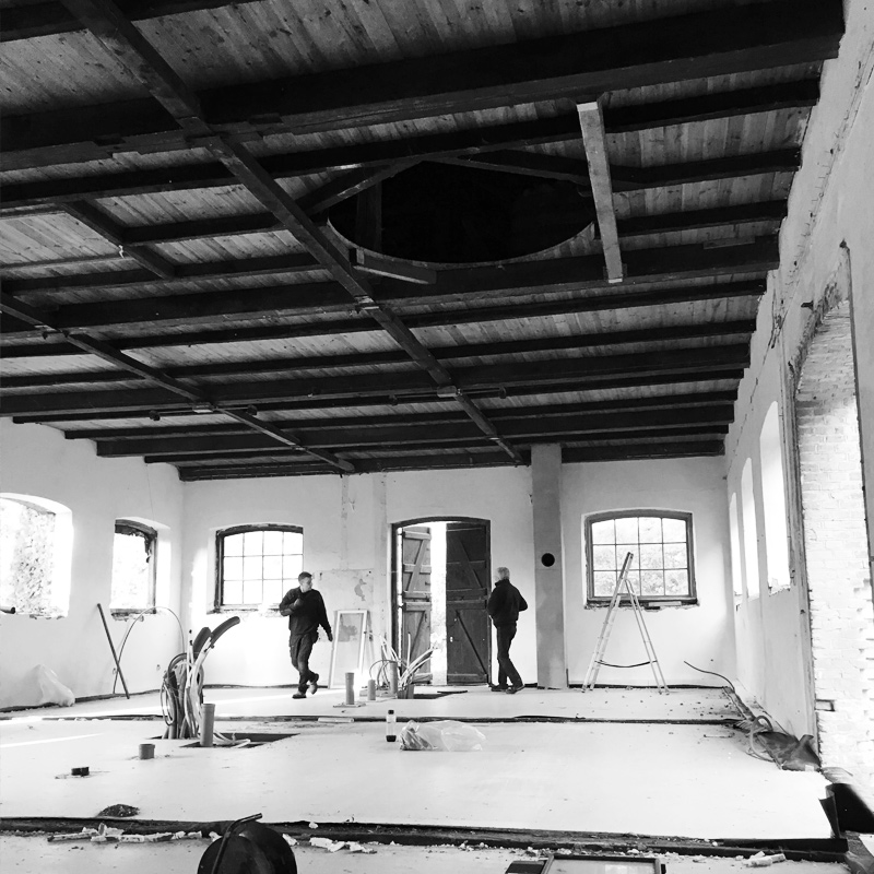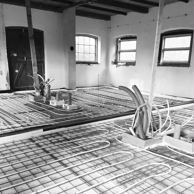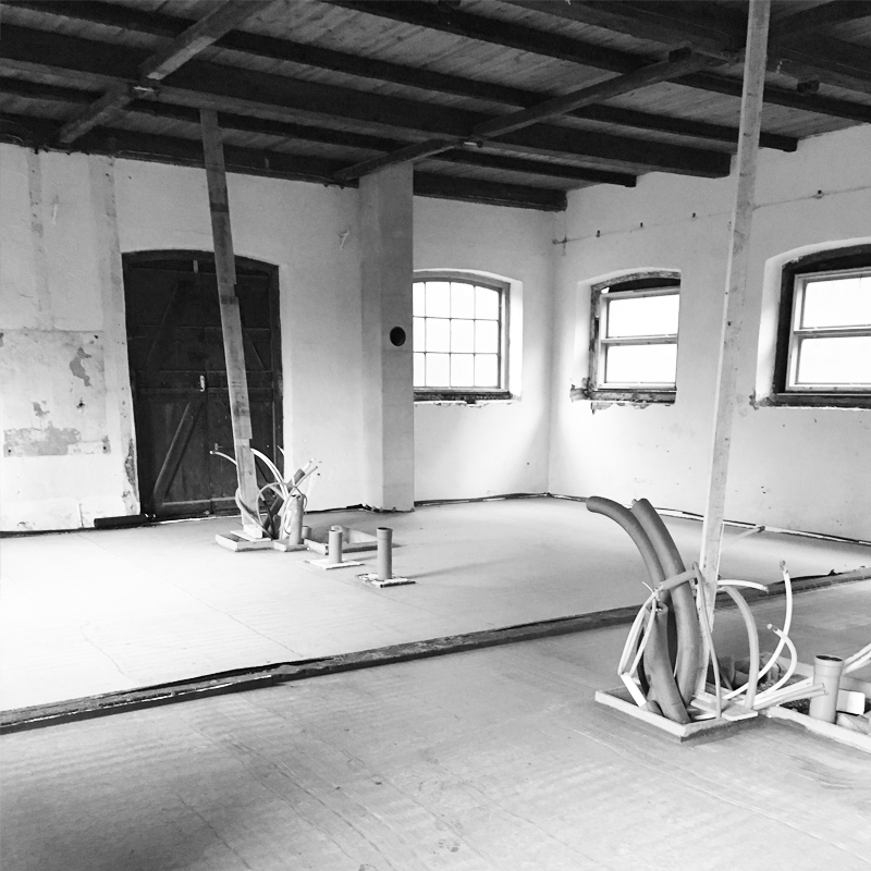 Gulvet i salen er støbt